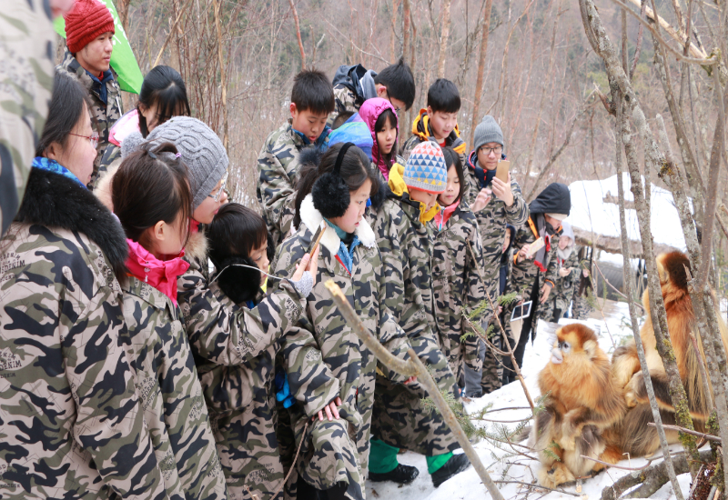 學(xué)生研學(xué)走進神農(nóng)架國家公園大龍?zhí)督鸾z猴基地(神農(nóng)架國家公園管理局供圖)