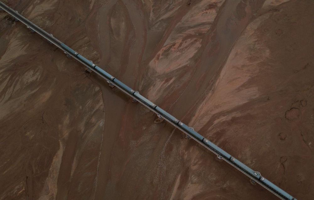 6月16日,一列火車經(jīng)過長江源地區(qū)的楚瑪爾河。