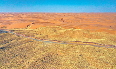 麥草方格沙障有效固定了流沙。 |