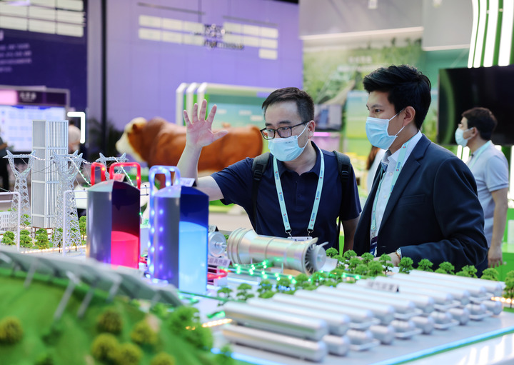 5月26日,觀眾在在中關(guān)村國家自主創(chuàng)新示范區(qū)展示中心了解100MW先進壓縮空氣儲能技術(shù)。新華社記者 張晨霖 攝