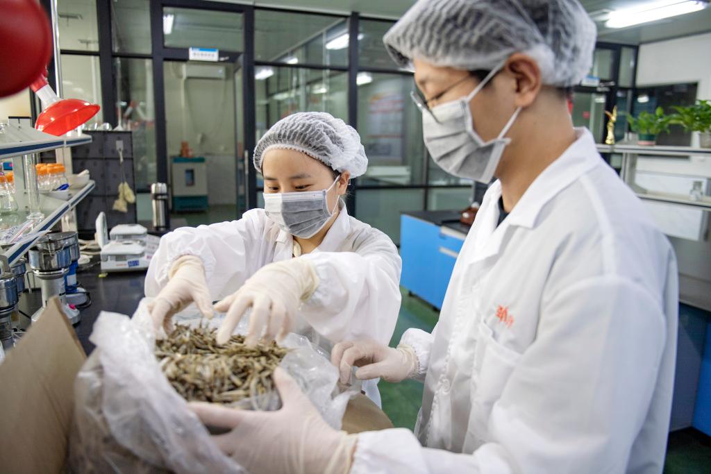 在湖南省岳陽市平江高新技術(shù)產(chǎn)業(yè)園區(qū),勁仔食品平江生產(chǎn)基地實驗室工作人員開箱,準(zhǔn)備對肯尼亞野生鳀魚產(chǎn)品進(jìn)行水分檢測(6月28日攝)。6月29日,中國首次進(jìn)口的肯尼亞野生鳀魚產(chǎn)品在湖南長沙開幕的第三屆中非經(jīng)貿(mào)博覽會上亮相。新華社記者 孫瑞博 攝