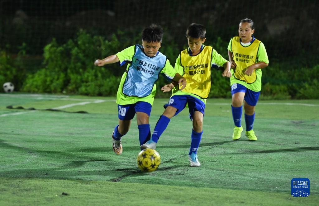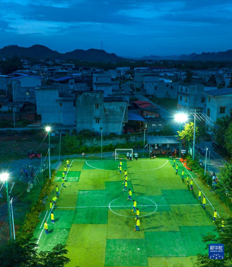 平地屯是位于廣西柳州市柳江區(qū)穿山鎮(zhèn)的一個(gè)小山村。8月7日晚,為期近1個(gè)月的平地屯暑期公益足球夏令營(yíng)結(jié)束,一場(chǎng)匯報(bào)訓(xùn)練成果的足球?qū)官愒诖謇锏木G茵場(chǎng)上打響,吸引眾多村民觀賽。2020年,平地屯的村民組成義務(wù)勞動(dòng)隊(duì),為孩子們修建專用足球場(chǎng),社會(huì)愛(ài)心人士為他們捐贈(zèng)了人工草坪、球門(mén)、球場(chǎng)照明燈等設(shè)施,公益足球教練定期免費(fèi)為孩子們培訓(xùn),眾人聯(lián)合起來(lái),給村里喜歡足球的孩子們點(diǎn)燃了綠茵夢(mèng)想。