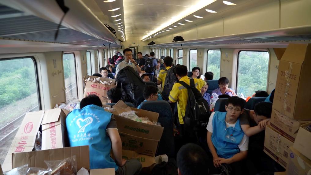 隨后,突擊隊成員徒步攜帶生活物資向安家莊站、落坡嶺站行進(jìn)。身負(fù)30至40斤背包,沿著受損的鐵路線,徒步11余公里,穿越7個隧道,為安家莊站、落坡嶺站滯留旅客及時送去物資。