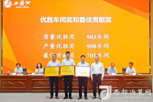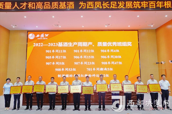 會上,張周虎宣讀了《關(guān)于對2022—2023基酒生產(chǎn)周期產(chǎn)質(zhì)量勞動競賽獲獎車間、班組進行表彰獎勵的決定》。與會領(lǐng)導(dǎo)為受表彰的獲獎車間、班組頒發(fā)獎牌。