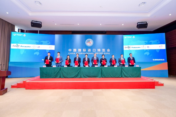 拜耳中國公共與政府事務(wù)及可持續(xù)發(fā)展副總裁高勇博士(左五)代表拜耳提前簽約第七屆進(jìn)博會(huì)
