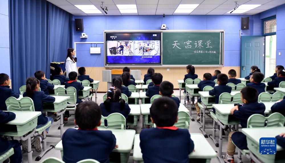 9月21日,在安徽省合肥市安慶路第三小學(xué)大楊分校,學(xué)生收看“天宮課堂”第四課。新華社發(fā)(葛傳紅攝)