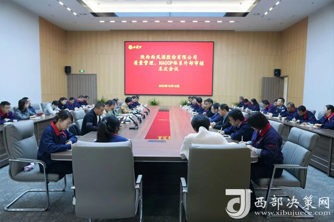 西部決策網(wǎng)訊(記者劉玉 韓宗憲 通訊員 雒丹 馬迪)10月16日至18日,中國方圓標志認證集團有限公司陜西審核中心對西鳳股份公司進行了2023年質(zhì)量管理、HACCP體系年度監(jiān)督審核。西鳳股份公司總工程師馮雅芳出席會議并講話,審核組專家、西鳳股份公司相關單位負責人參加會議,會議由審核組組長孫典鋒主持。