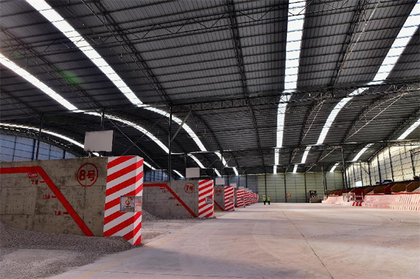 8標(biāo)拌和站建設(shè)在受到地形限制的情況下,沒有機(jī)械執(zhí)行“標(biāo)準(zhǔn)化”要求,創(chuàng)新地提出了新方案。按照標(biāo)準(zhǔn),拌和站料倉是一排設(shè)立,而8標(biāo)2號(hào)拌和站是在一半劈山、一半填方的基礎(chǔ)上建設(shè)的,地形不允許一排設(shè)立料倉。項(xiàng)目部就改為兩邊對(duì)稱設(shè)立。進(jìn)而,又激發(fā)了項(xiàng)目部在原料樣品盒設(shè)置上的創(chuàng)新思維。料倉樣品盒,慣例都是在料倉隔離墻一側(cè)的一個(gè)架子上放著,在8標(biāo)2號(hào)拌和站,要是這樣放置的話,受距離和面積限制很容易被鏟車掛掉。項(xiàng)目部總工張廣輝提出,在隔離墻一側(cè)高1.2米的位置鑲?cè)胍粋€(gè)50厘米見方的盒子作為樣品盒。建成后,既沒有侵占距離和空間,又使得隔離墻整齊美觀,而且還不用更換盒子經(jīng)濟(jì)實(shí)惠。