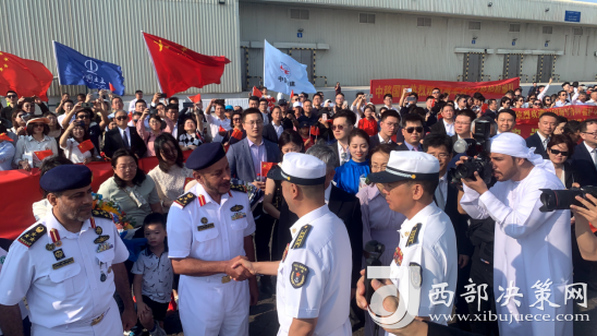 中國海軍編隊艦艇淄博艦、荊州艦、千島湖艦駛?cè)朐赂劭?,阿?lián)酋軍方代表,中國駐阿聯(lián)酋大使張益明,中國駐迪拜總領(lǐng)事李旭航等使領(lǐng)館工作人員、華僑華人及家屬代表、中資企業(yè)代表、在阿退伍老兵代表、留學生代表等,近600人現(xiàn)場參加歡迎儀式。