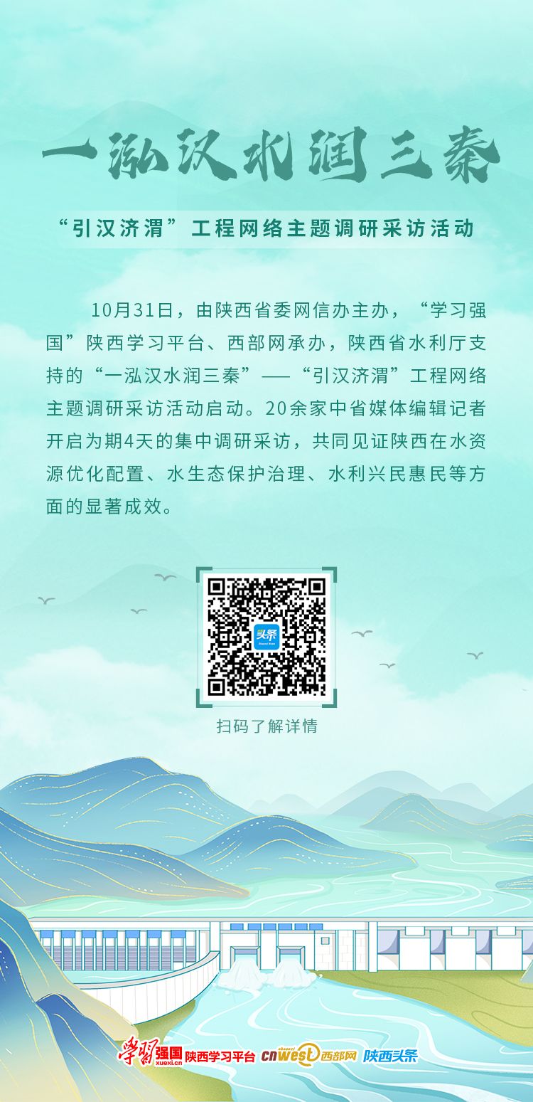 為貫徹落實習近平總書記關于治水的重要論述,大力宣傳陜西破解水資源瓶頸、實現水資源配置空間均衡的重大水利基礎設置建設項目——“引漢濟渭”工程,10月31日,“一泓漢水潤三秦”——“引漢濟渭”工程網絡主題調研采訪活動啟動。