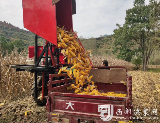 西部決策網(wǎng)訊(記者帥華鋒 通訊員 余小芹 余雅各 李三良)田疇沃野好“豐”光,遍地金黃糧滿倉(cāng)。金秋時(shí)節(jié),甘肅隴南兩當(dāng)縣西坡鎮(zhèn)田間地頭的玉米喜獲豐收,村民們正利用晴好天氣采收玉米,忙得不亦樂乎,家家戶戶房前屋后堆滿了金黃的玉米,洋溢著豐收喜悅的笑臉與收獲的金黃色玉米交相輝映,勾勒出一幅動(dòng)人的金秋豐收?qǐng)D。