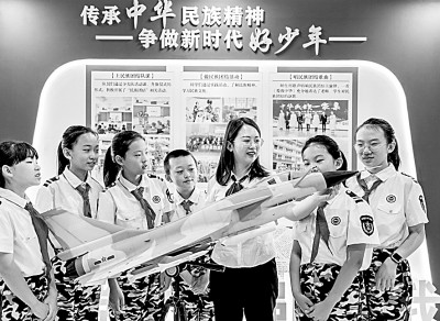 9月14日,內(nèi)蒙古自治區(qū)呼和浩特市玉泉區(qū)五塔寺東街小學學員們學習國防知識,增強國防觀念。丁根厚攝/光明圖片