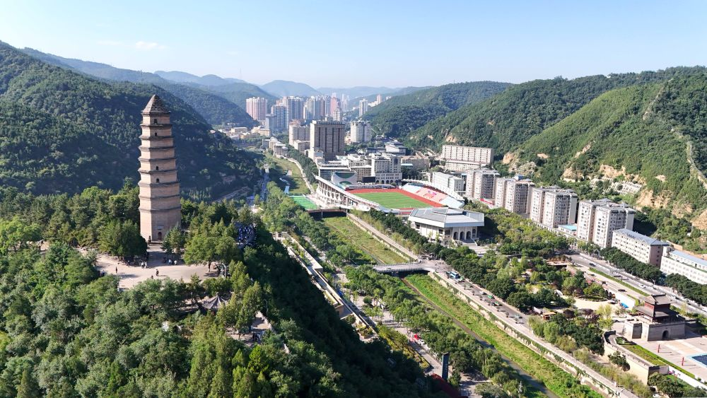 8月30日拍攝的延安市城區(qū)風(fēng)光。新華社記者 鄒競一 攝