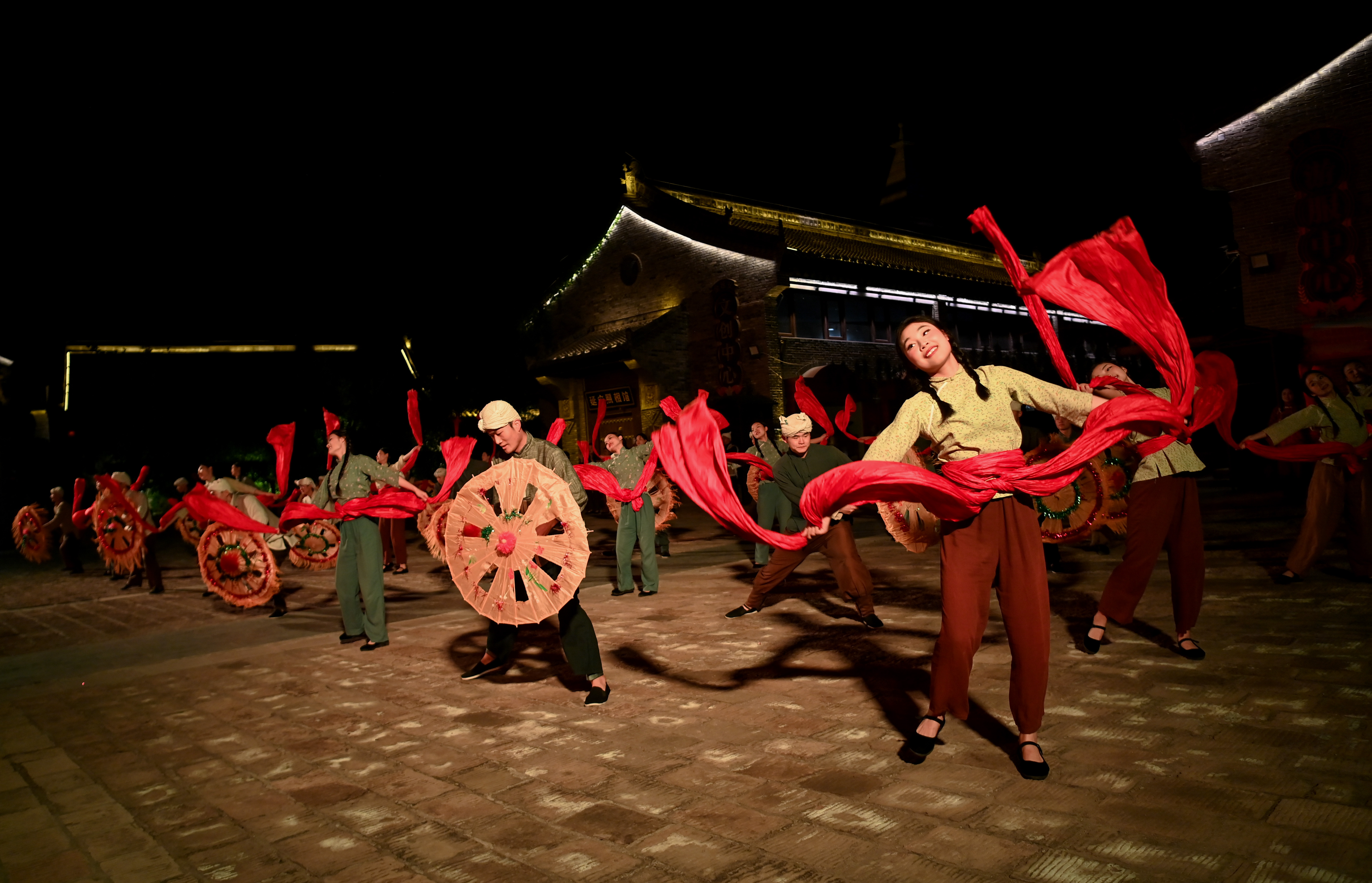 8月31日,演員在陜西延安的金延安文化旅游產(chǎn)業(yè)園區(qū)表演紅色歌舞劇《延安十三年》。新華社記者 鄒競一 攝