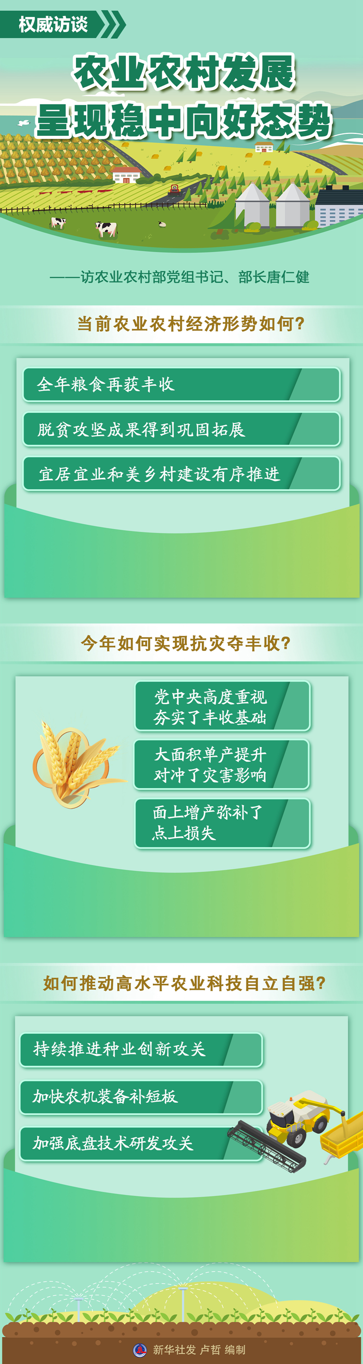 新華社北京11月8日電 題:農業(yè)農村發(fā)展呈現穩(wěn)中向好態(tài)勢——訪農業(yè)農村部黨組書記、部長唐仁健