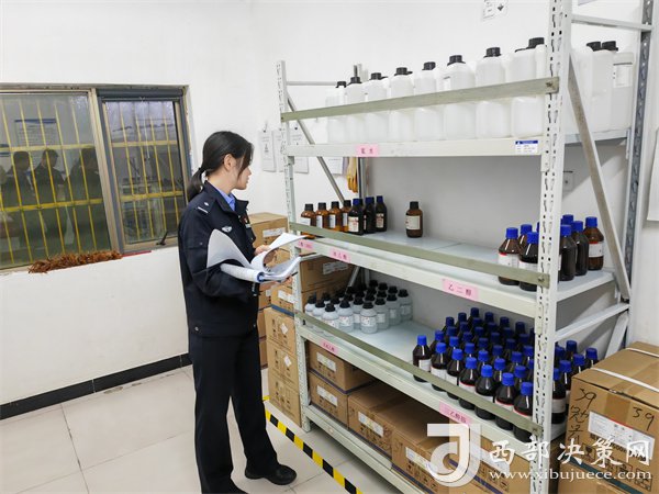 檢查中,民警詳細(xì)檢查了易制爆、易制毒化學(xué)品儲(chǔ)存場所安全管理防范措施的落實(shí)情況,查看了相關(guān)場所的出入庫、儲(chǔ)存、使用等臺(tái)賬資料,仔細(xì)檢查了消防設(shè)施、監(jiān)控設(shè)備、“人物技犬”等防范措施落實(shí)情況。