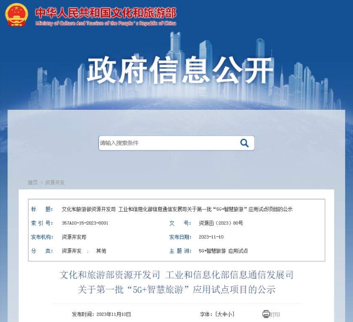11月10日,據(jù)文化和旅游部網(wǎng)站消息,第一批“5G+智慧旅游”應(yīng)用試點項目公示,全國共30個項目入選,其中“大唐不夜城5G+智慧旅游試點”為陜西省唯一入選項目。