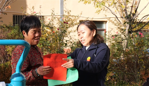 社區(qū)人員走進(jìn)小區(qū)宣傳安全與衛(wèi)生知識(shí)