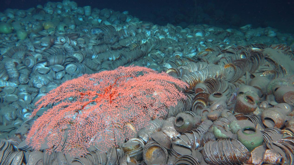 南海西北陸坡一號(hào)沉船遺址畫面。新華社發(fā)