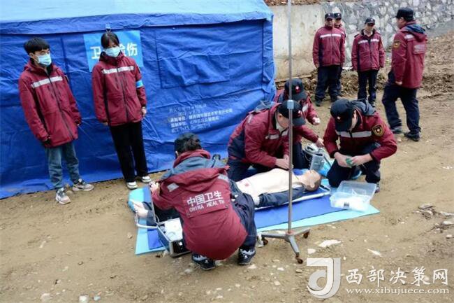 本次演練采取實戰(zhàn)演練的形式進行,模擬陜西省商洛市山陽縣戶家塬鎮(zhèn)寺坡村發(fā)生地質(zhì)災(zāi)害,出現(xiàn)人員被困、道路房屋損毀、水電停用、通訊中斷等復(fù)雜情況后,省衛(wèi)生應(yīng)急指揮部立即啟動III級衛(wèi)生應(yīng)急響應(yīng),發(fā)出緊急衛(wèi)生應(yīng)急指令,商洛市、漢中市、安康市衛(wèi)生健康委接到命令后第一時間集結(jié)隊伍,趕赴受災(zāi)現(xiàn)場進行急救。通過開展健康監(jiān)測、傷員救治與轉(zhuǎn)運、動物尸體處理和環(huán)境消毒、心理疏導(dǎo)、健康教育宣傳、醫(yī)療巡診、傳染病流行病學(xué)調(diào)查、飲用水采樣消毒快檢、營地搭建、應(yīng)急保障、總結(jié)評估等11個科目實戰(zhàn)演練,全面檢驗了衛(wèi)生應(yīng)急指揮體系、聯(lián)動機制、協(xié)作機制、實踐操作機制以及科學(xué)應(yīng)對等機制。