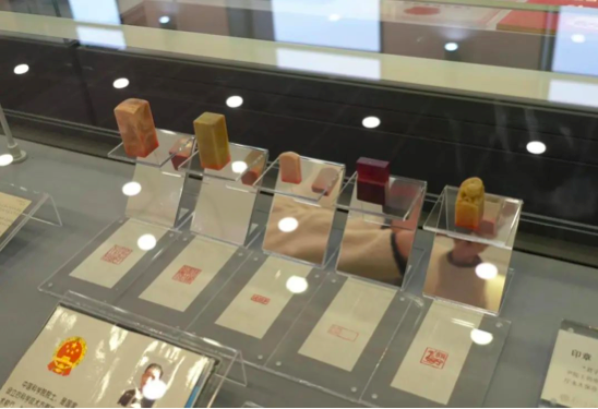 展柜里還有一排整齊擺放的方印格外醒目。其中,三枚是沈自尹院士工作時(shí)常用的處方藥和膏方專(zhuān)用印。