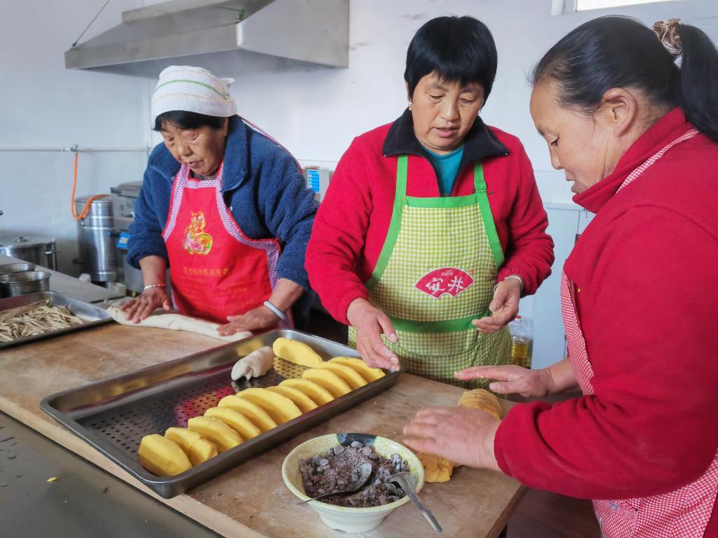 2023年11月14日,馬家峪村老年餐廳養(yǎng)老護(hù)理員在準(zhǔn)備晚餐。新華社記者魏飚 攝
