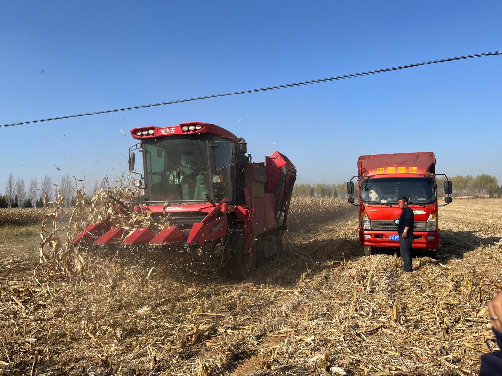 壽陽縣景尚鄉(xiāng)正在進(jìn)行玉米機收。新華社記者 王勁玉 攝