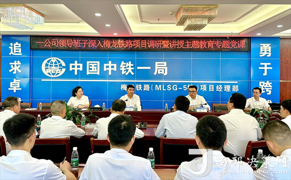 近日,中鐵一局一公司總經(jīng)理韓勝到梅龍鐵路(MLSG-5標(biāo))項(xiàng)目調(diào)研,并為黨員講授“學(xué)思踐悟強(qiáng)思想,固本強(qiáng)基謀發(fā)展”主題教育專(zhuān)題黨課。項(xiàng)目班子成員、黨員共計(jì)30余人參加。