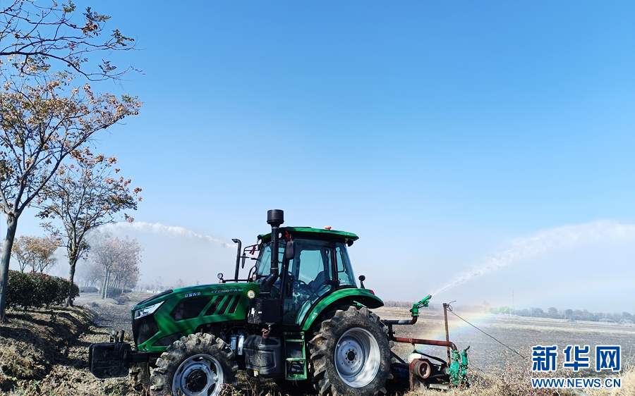 龍亢農(nóng)場(chǎng)機(jī)械灌溉農(nóng)田。新華網(wǎng)李東標(biāo) 攝