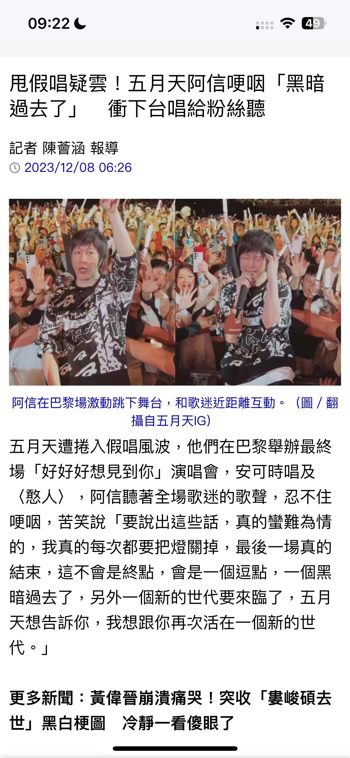 阿信哽咽說黑暗過去了