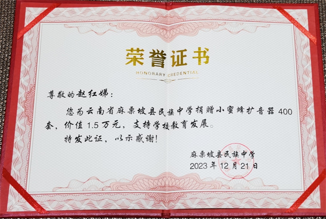 趙紅娣理事長此次為麻栗坡縣民族中學(xué)的師生捐贈了400臺“小蜜蜂”擴(kuò)音器設(shè)備,共價值1.5萬元。這些設(shè)備能夠為學(xué)生提供更加清晰、逼真的聲音體驗,改善學(xué)校的教學(xué)條件和學(xué)生的學(xué)習(xí)環(huán)境。