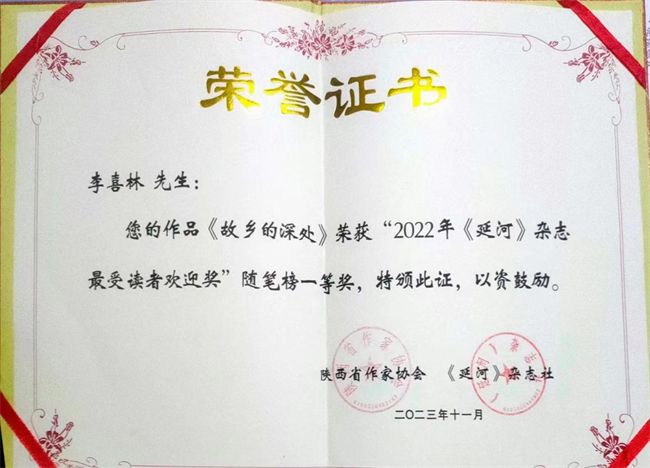 西部決策網(wǎng)訊(記者 劉玉 韓宗憲)備受文學(xué)界和讀者關(guān)注的最受讀者歡迎獎(jiǎng)日前在西安揭曉,陜西實(shí)力作家李喜林憑借隨筆《故鄉(xiāng)的深處》獲一等獎(jiǎng)。