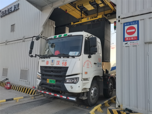 在咸陽秦漢混凝土有限公司,記者目睹了一輛新能源混凝土運輸車通過換電站快速完成換電的過程。這個換電站是全省規(guī)模最大的9+1換電站,換電僅需2分鐘,即可達到車輛續(xù)航160公里,確保所有車輛連續(xù)運輸。