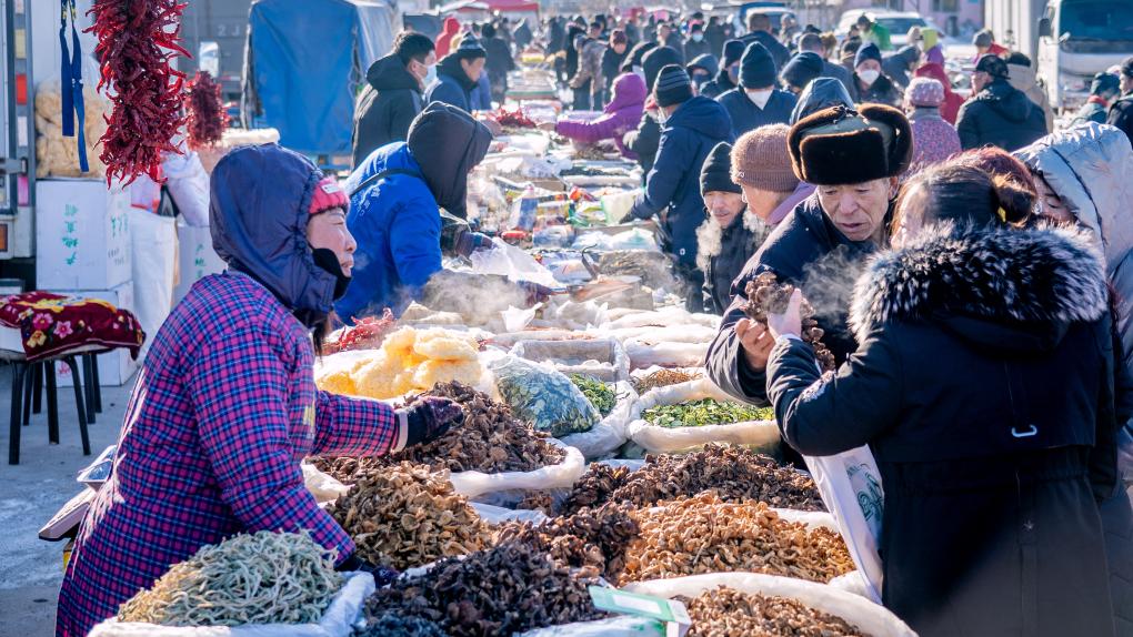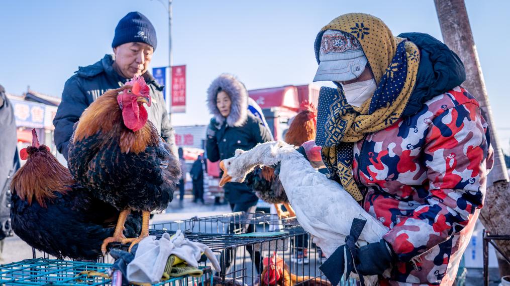 “凍梨凍柿子嘞,嘎嘎甜,不甜不要錢(qián)”“冰糖心蘋(píng)果賤賣(mài)嘍,3斤10塊”“排骨18塊1斤,棒骨8塊1斤”……臨近年關(guān),吉林省長(zhǎng)春市近郊的卡倫大集上,人群摩肩接踵,叫賣(mài)聲此起彼伏。這個(gè)中國(guó)東北農(nóng)村集市年味漸濃。