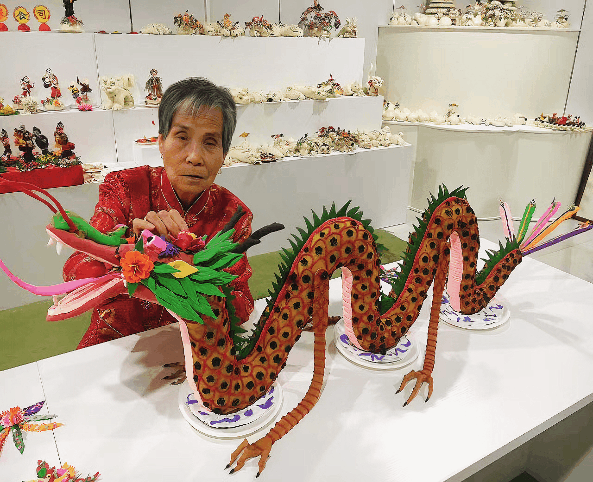 揉、捏、揪、挑、壓、搓、撥、按......在黃陵手藝人的巧手中擺弄幾番,一個憨態(tài)可掬的“二龍戲珠”花饃立時活靈活現(xiàn)躍入眼簾。