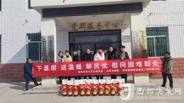 西部決策網(wǎng)訊(記者帥華鋒 張隴峰)1月29日,寶雞市為民書畫院與陜西耀誠展業(yè)建筑工程公司一行多人來到千陽縣草碧鎮(zhèn)寇家河村慰問當(dāng)?shù)乩щy群眾。
