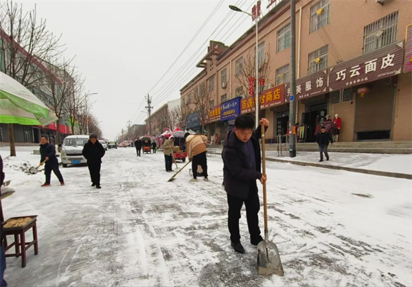 以雪為令,疏通道路。領(lǐng)導班子成員在崗指揮、對鎮(zhèn)區(qū)內(nèi)路段包片開展掃雪鏟冰,同時督促商戶履行“門前三包”區(qū)域積雪清掃職責。鎮(zhèn)村黨員干部紛紛行動,主動參與到掃雪鏟冰活動中,清理主要道路積雪,方便群眾出行。