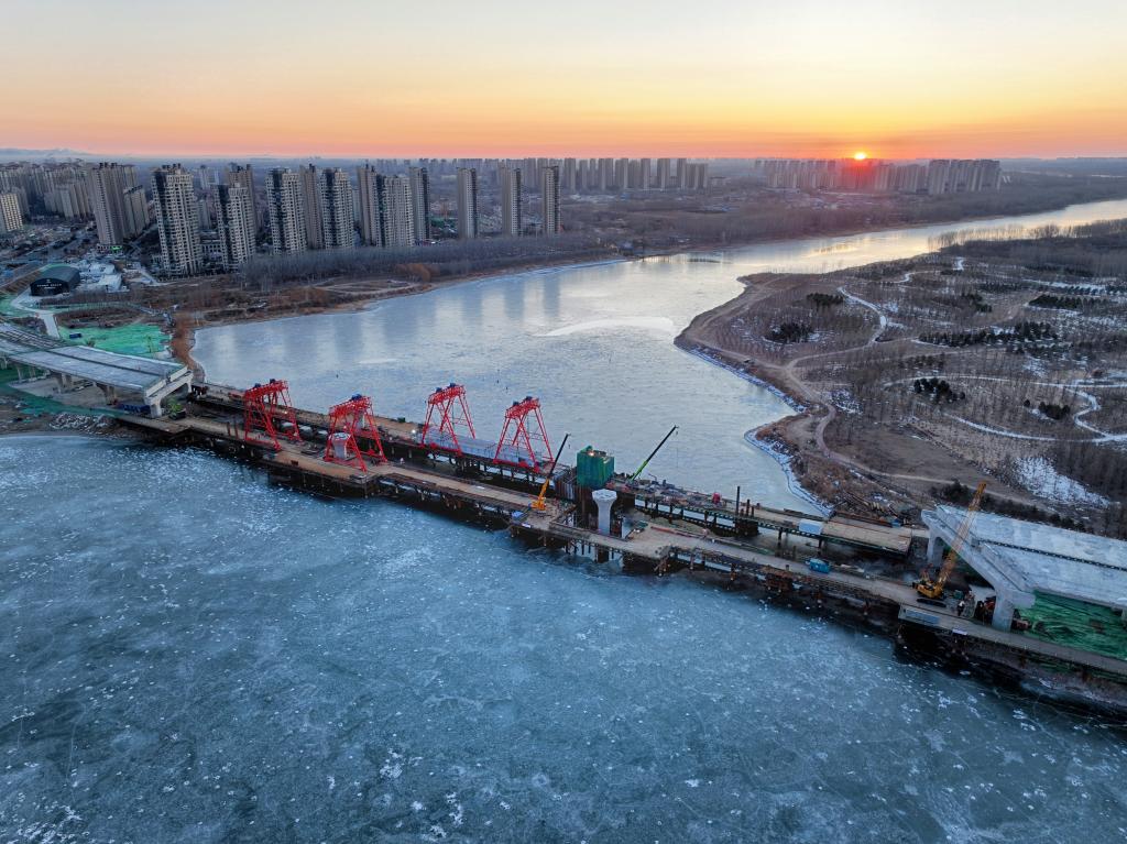 冬日,潮白河結(jié)冰的河面上,廠通路潮白河大橋項目正在爭分奪秒加緊施工。站在施工搭起的棧橋上眺望,河岸兩側(cè)的引橋已初具規(guī)模,向遠(yuǎn)處延伸。向東,是廊坊大廠回族自治縣已經(jīng)通車的廠通路;向西,則是通向北京城市副中心的通懷路。