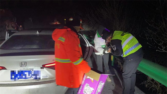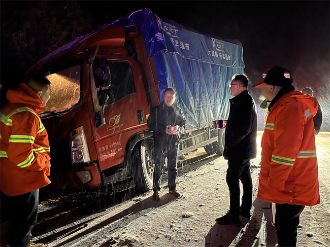 除雪保暢小分隊為過往受困車輛司機提供食物、熱水服務
