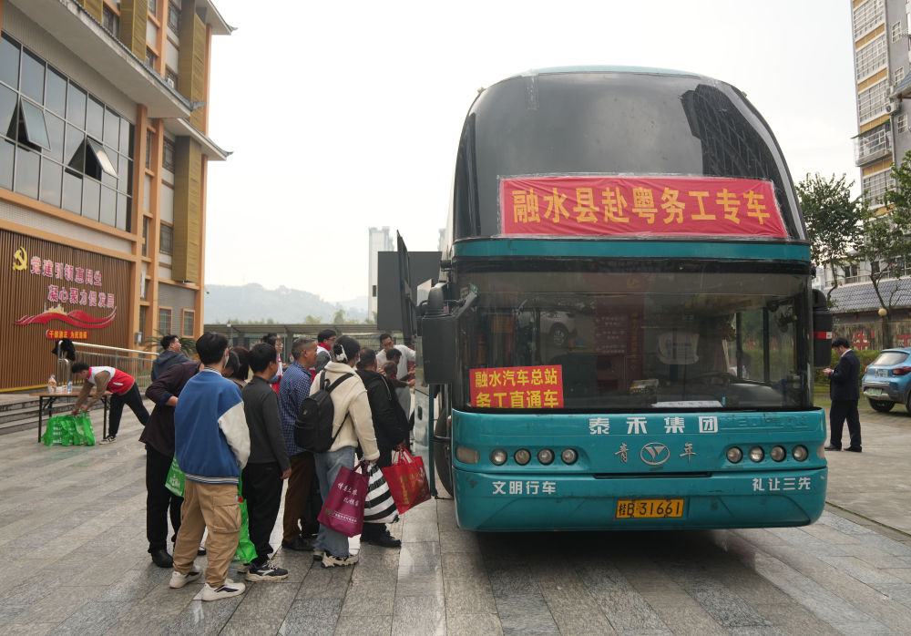 2月21日,廣西柳州市融水苗族自治縣務(wù)工人員乘坐赴粵專(zhuān)車(chē)返崗工作。新華社記者 黃孝邦 攝