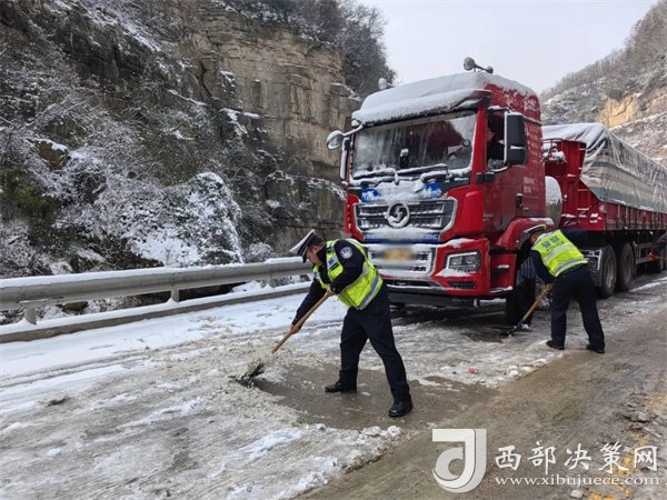 西部決策網(wǎng)訊 2月23日至24日,受強(qiáng)寒潮天氣影響,寧強(qiáng)縣出現(xiàn)大范圍降溫降雪天氣,強(qiáng)降雪造成路面積雪、結(jié)冰,給群眾出行帶來(lái)極大安全隱患。寧強(qiáng)公安迎“雪”而戰(zhàn),全警聯(lián)勤聯(lián)動(dòng),戰(zhàn)風(fēng)雪、排隱患、保暢通。
