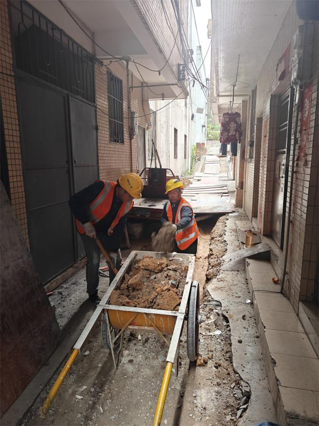 作為番禺村居雨污重點工程,在項目全員的精準施策和因地制宜管理下,番禺集群項目得到了業(yè)主和各村委的高度重視和青睞。節(jié)后項目與業(yè)主和村委召開8次專題會議,精心制定復工復產方案,確保項目安全穩(wěn)定復工。為了保障項目的順利推進,集群所屬各項目現場管理人員在施工區(qū)域內全覆蓋走訪,全面摸排,“聽民心,知民意”“對癥下藥”,共計摸排7個村,189條巷道,23公里雨污水管網,走訪調查村民165戶,確保在順利施工的同時,保障居民的正常生活,為項目的順利保駕護航。