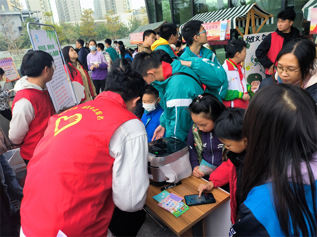 此次志愿服務(wù)活動(dòng)采用現(xiàn)場(chǎng)教學(xué)和有趣的垃圾分類挑戰(zhàn)賽等方式,向市民傳播垃圾分類的科學(xué)知識(shí)和綠色環(huán)保的生活理念。垃圾分類達(dá)人挑戰(zhàn)賽現(xiàn)場(chǎng)氣氛熱烈,答題挑戰(zhàn)隊(duì)伍排成了長(zhǎng)龍,每位參與者都躍躍欲試、反復(fù)操練,期望在分類游戲挑戰(zhàn)賽中取得高分和心儀的獎(jiǎng)品。