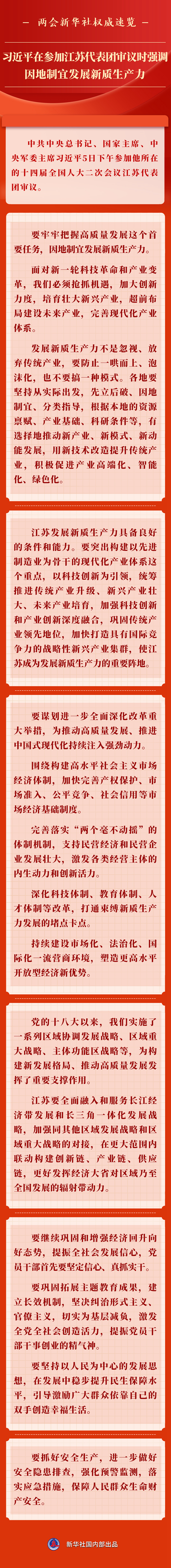 兩會新華社權(quán)威速覽丨習(xí)近平在參加江蘇代表團審議時強調(diào) 因地制宜發(fā)展新質(zhì)生產(chǎn)力