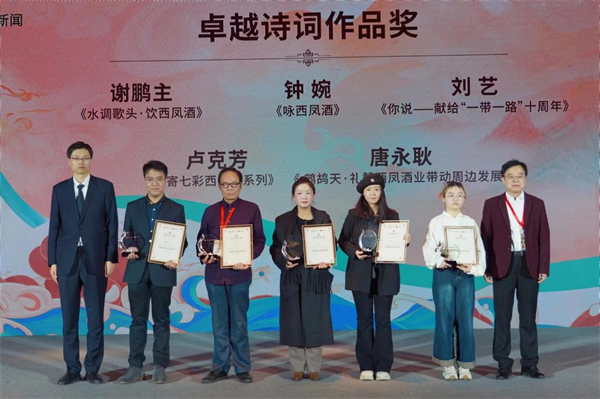 西部決策網(wǎng)訊(記者劉玉韓宗憲通訊員張?zhí)炝Ⅵ梦姆澹┰娋莆幕瑴嘏澜纭?月7日,以“詩酒飄香、悅享世界”為主題的“一帶一路”西鳳酒詩詞大會頒獎典禮在西安隆重舉行。中央電視臺原臺長,光明日報社原總編輯,第十屆中國文聯(lián)副主席胡占凡,著名作家、中國作家協(xié)會社聯(lián)部主任李曉東,中華詩詞學(xué)會常務(wù)副會長林峰,央視百家講壇主講人、鄭州大學(xué)文學(xué)院教授王士祥,中華詩詞學(xué)會評論部副主任,火箭軍工程大學(xué)原副校長杭中華,央視《中國詩詞大會》學(xué)術(shù)總負責(zé)人李定廣,中華詩詞學(xué)會顧問,陜西省詩詞學(xué)會會長孟建國,著名酒文化專家、山東社會科學(xué)院歷史所研究員王賽時,西北大學(xué)歷史學(xué)院副教授、中國文明史研究院研究員路中康。網(wǎng)易傳媒副總裁李淼,網(wǎng)易傳媒華北銷售中心副總經(jīng)理于洋。西鳳集團公司黨委書記、董事長、股份公司董事長張正,西鳳股份公司總經(jīng)理張周虎,西鳳集團公司黨委副書記、工會主席郭拴新,西鳳股份公司副總經(jīng)理周艷花、高亞蘭,西鳳酒股份有限公司總文化顧問高洪濤以及《人民日報》、新華社、新浪、網(wǎng)易、鳳凰網(wǎng)、《華爾街日報》、英國衛(wèi)報、中國經(jīng)營報、每日經(jīng)濟新聞、北京日報、陜西日報等50多家媒體代表,詩詞愛好者參加會議。新華直播、網(wǎng)易新聞、西鳳股份公眾號、抖音平臺對大會進行了現(xiàn)場直播。