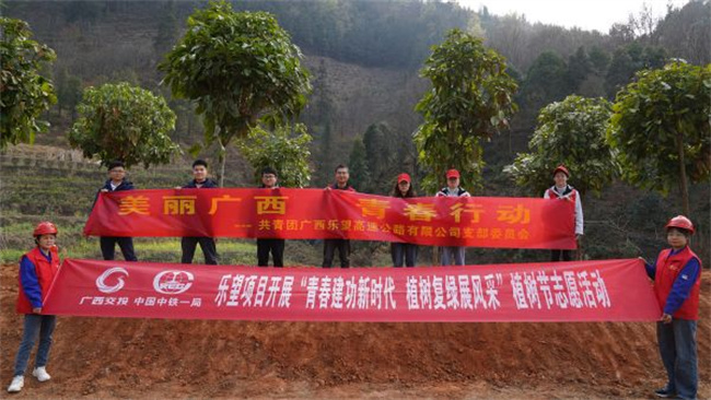 三月春光至,植樹添綠時。3月12日早上,中鐵一局三公司樂望項目團支部聯(lián)合廣西樂望高速公路有限公司團委共同開展了“青春建功新時代,植樹復綠展風采”植樹節(jié)志愿活動。廣西樂望高速公路有限公司黨委書記、董事長、總經(jīng)理黃成岑,黨委副書記、工會主席陳龍,項目領導班子共同參加。