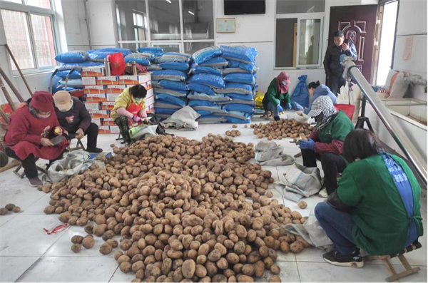 “現(xiàn)在年紀大了,外出打工也找不到活干,正好村里在發(fā)展土豆產(chǎn)業(yè),也成立了村集體合作社,在家門口我們就能就業(yè),不僅能照顧家庭,每天的收入100元補貼家用足夠用了。”正在覆膜機上負責給土豆覆膜的竹園村村民畢宗平臉上洋溢著幸福喜悅說道。