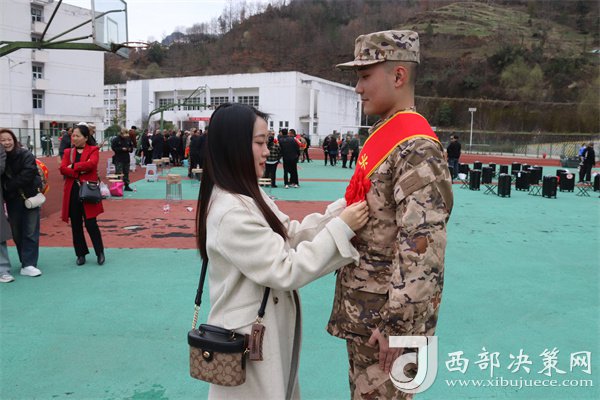 歡送大會在雄壯的國歌聲中拉開帷幕,縣人武部副部長宣讀新兵服役去向,縣退役軍人事務(wù)局副局長為新兵及家長解讀軍人優(yōu)撫優(yōu)待政策??h人武部政委作動(dòng)員講話,對大家給予厚望:要做父母放心的好兒子,要當(dāng)人民軍隊(duì)的好戰(zhàn)士,要樹“略陽兵”的好形象。與會領(lǐng)導(dǎo)為全體新兵佩戴“光榮入伍”綬帶和紅花,縣雙擁辦為新兵們贈送行李箱等紀(jì)念品。新兵們胸戴紅花、身披綬帶,精神抖擻、斗志昂揚(yáng),展現(xiàn)出新時(shí)代有志青年參軍報(bào)國、矢志軍營建功立業(yè)的高尚情懷。
