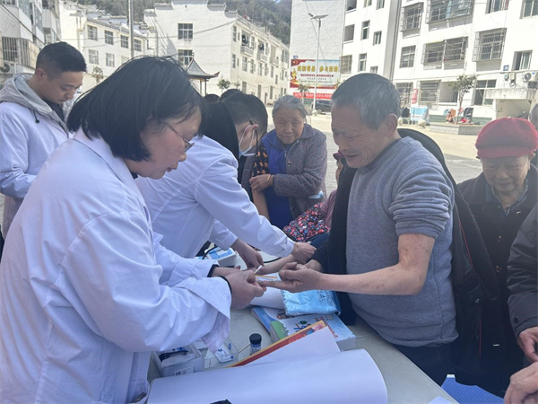 義診現(xiàn)場(chǎng),醫(yī)生為居民提供測(cè)量血壓、血糖等診療服務(wù),耐心詢問(wèn)居民身體狀況,讓他們及時(shí)了解自己的身體狀況及相關(guān)疾病的預(yù)防。同時(shí),還為前來(lái)就診的老年人普及糖尿病、高血壓健康保健知識(shí)和日常生活的養(yǎng)生常識(shí),引導(dǎo)他們樹(shù)立防護(hù)意識(shí),培養(yǎng)健康生活習(xí)慣。