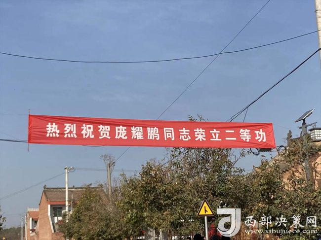 在喜慶的鑼鼓聲中,在現(xiàn)場父老鄉(xiāng)親的見證下,報喜團成員抬著熠熠生輝的“二等功臣之家”的牌匾,懸掛起“熱烈祝賀龐耀鵬同志榮立二等功”的橫幅,來到龐耀鵬家門口,為龐耀鵬母親、岳父、岳母佩戴綬帶,頒發(fā)喜報,送上牌匾和獎勵金。座談交流中,報喜團詳細了解了龐耀鵬家屬的身體和生活狀況,感謝他們?yōu)樽鎳囵B(yǎng)了優(yōu)秀的軍事人才,鼓勵他們一如既往支持龐耀鵬安心部隊服役,建功軍營,爭取再立新功,為家鄉(xiāng)和國防事業(yè)增光添彩。